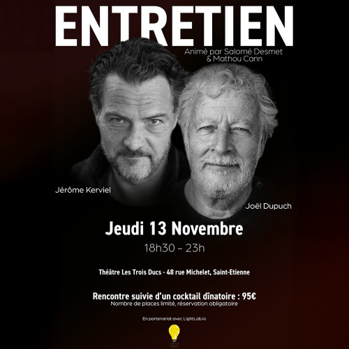 Afficher le planEntretien Jérôme Kerviel x Joël Dupuch Deux parcours hors normes. Un échange sans filtre. Sur scène, Jérôme Kerviel & Joël Dupuch partagent leurs parcours. Un format inédit où l'humour ouvre la porte de l'intime et l'inattendu, animé par Salomé Desmet & Mathou Cann. En partenariat avec LightLab.io - Agence de Com Innovante
